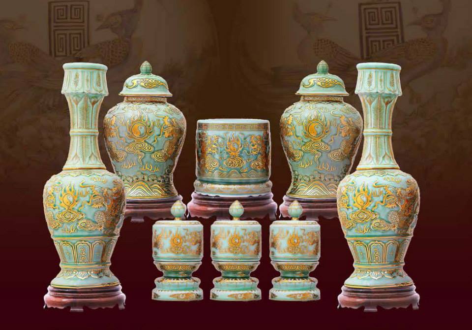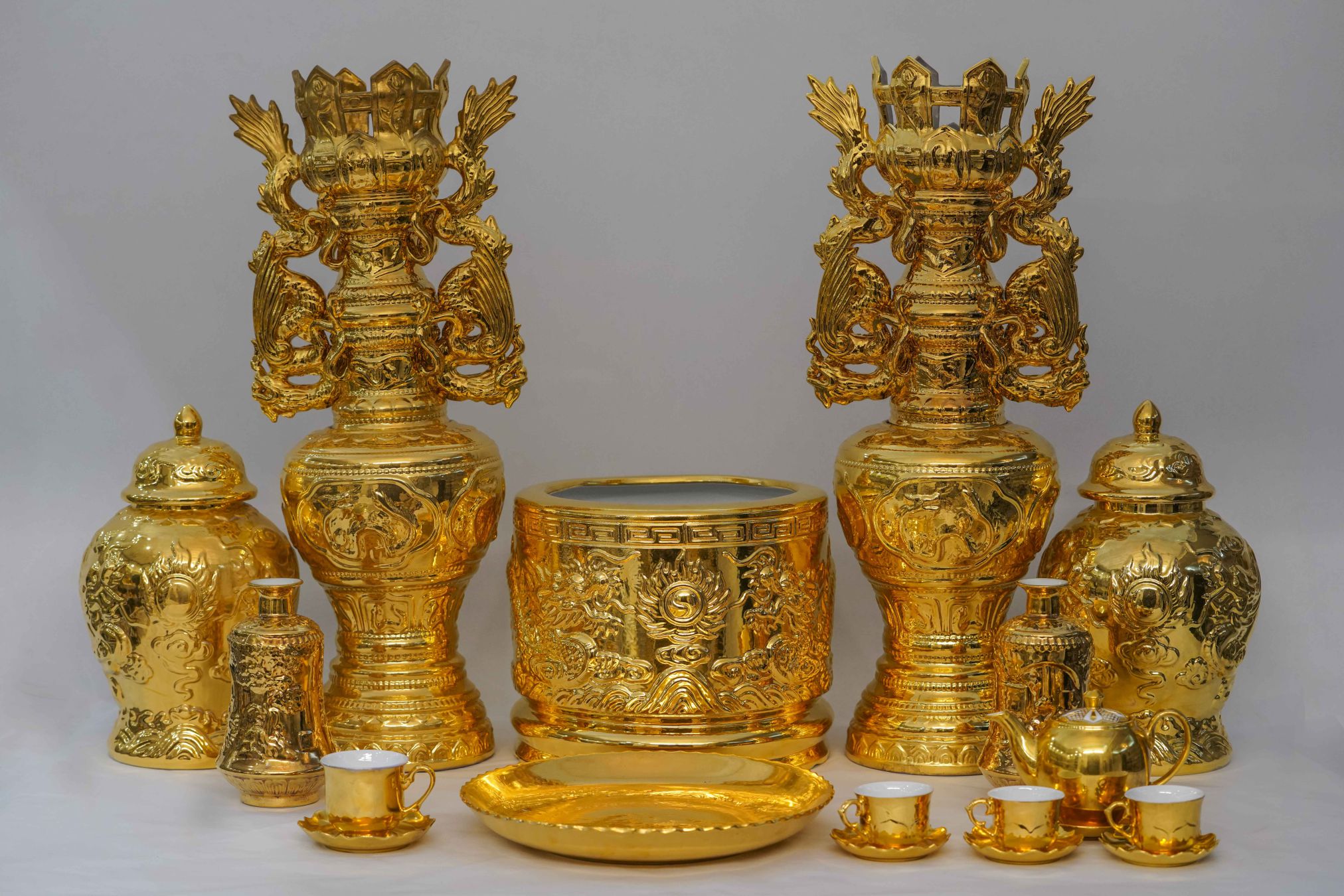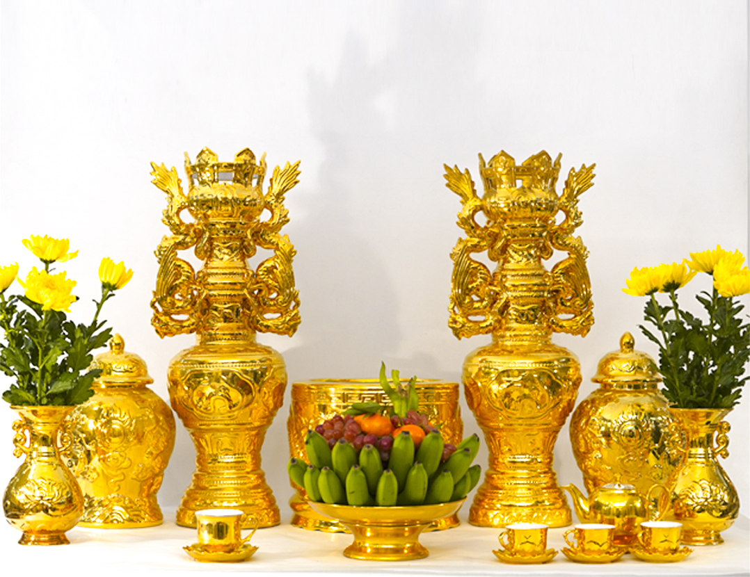 Tất cả đều được làm theo qui trình niêm mật tinh chuyên dành cho pháp giới tâm linh, dùng chính báo (tâm) để chuyển (y báo). Tất cả đều được vẽ và phủ kín vàng kim 24karat, một thương hiệu vàng nổi tiếng Hereus của Liên Bang Đức. Bộ thờ có bốn loại đặc trưng gồm: Ngọc kim, chàm kim, bạch kim và phủ kín vàng kim, kích cỡ cũng có nhiều loại cao thấp, và kích cỡ khác nhau cho phù hợp với điều kiện riêng của từng nhà.