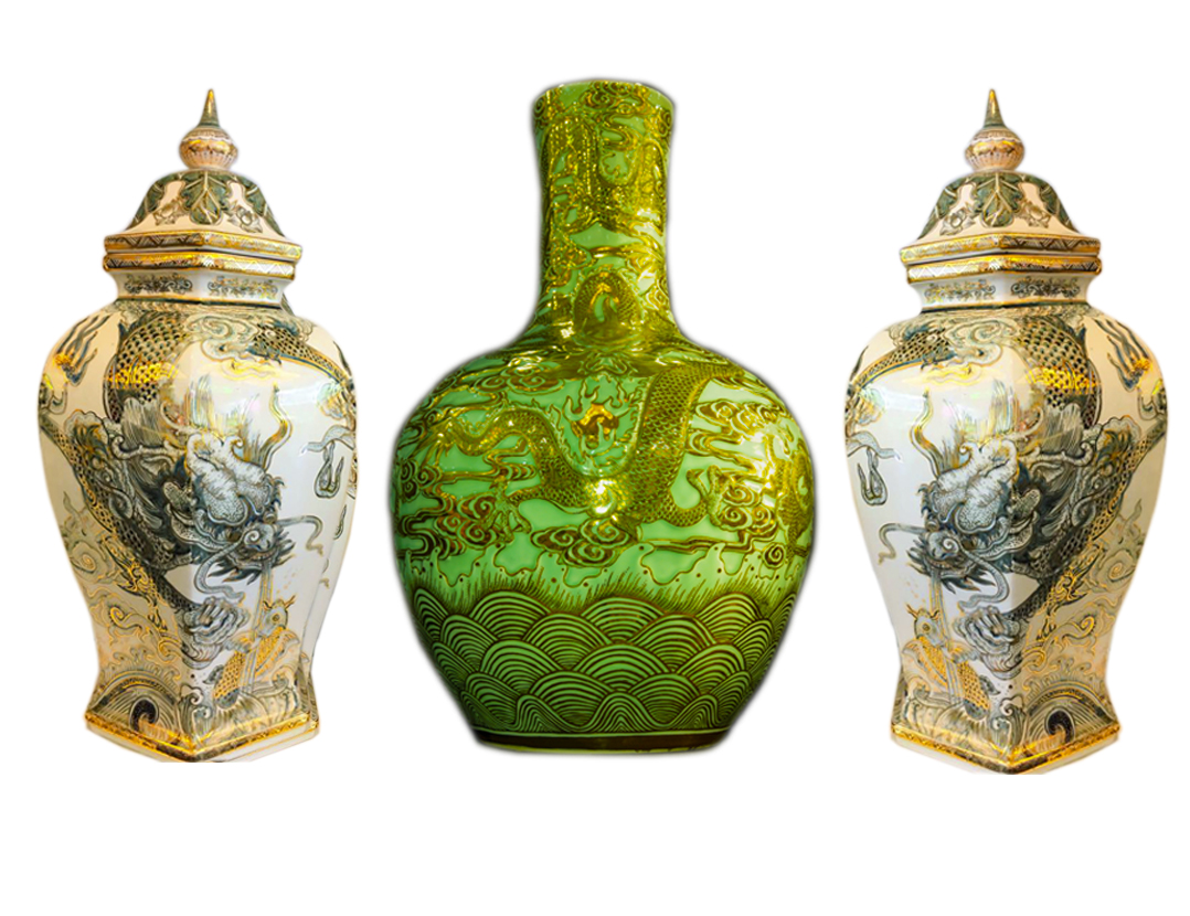 Bộ Phong thủy năng lượng gồm nhiều loại: thiên cầu, chóe lục lăng, tỳ bà, lục bình, quả trứng, có thể sắp đặt hoặc bày đơn, đôi, hoặc ba sản phẩm v.v... Ví dụ bộ giao long hý thủy gồm 3 sản phẩm có kích cỡ to và cao khoảng 68cm: Giữa là thiên cầu biểu trưng cho quyền lực tối thượng của chủ gia đình, công ty, tập đoàn, quê hương, đất nước; hai bên thiên cầu có 2 chóe lục lăng kiểu dáng vũ trụ nhân sinh, có chóp nhọn thiết kế theo pháp biểu trưng để tiếp sóng. Theo nguyên lý, sự sống tác dụng vào vật chất để chuyển hóa năng lượng: Chất thượng thanh khí sẽ tạo ra thượng trí. Chất thái thanh khí sẽ tạo ra hạ trí.